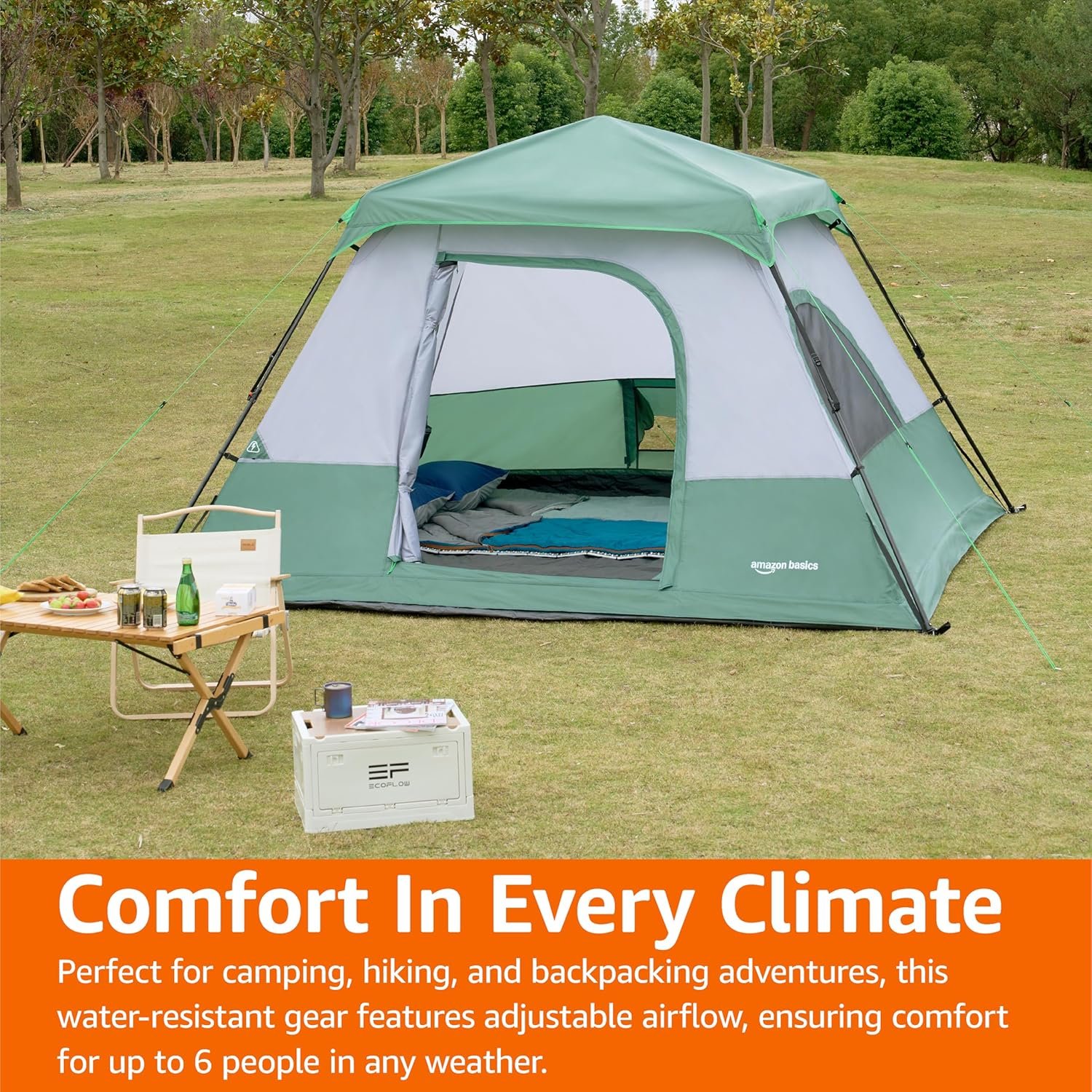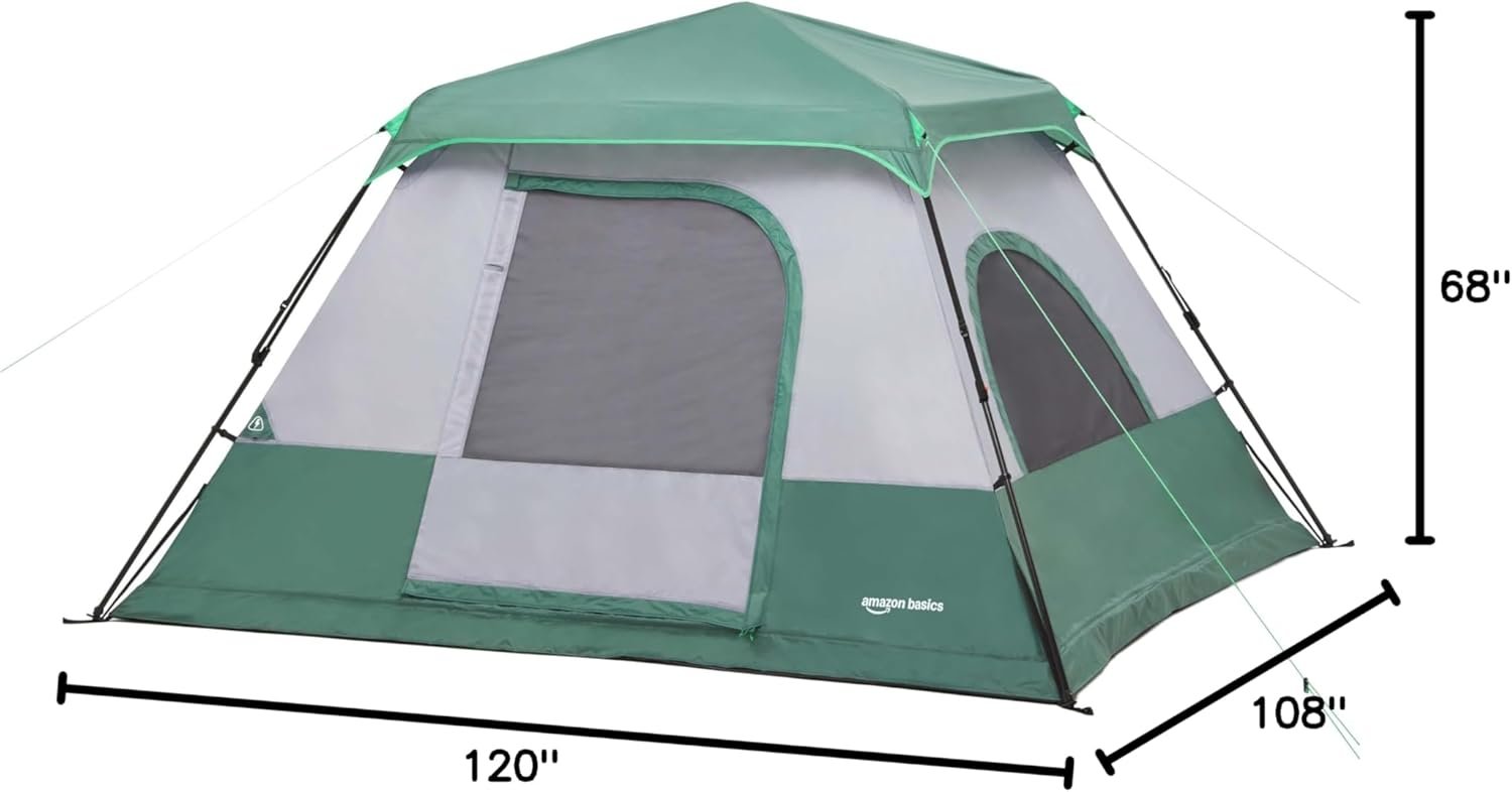 Amazon Basics Instant Camping Tent with Rainfly, Weather-Resistant, Quick Setup